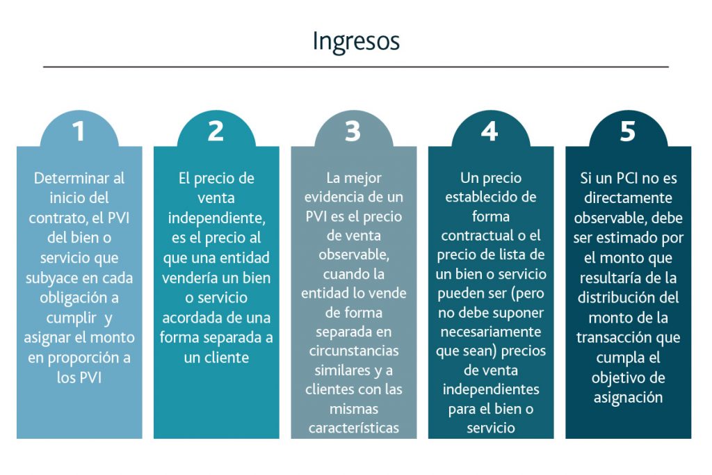 La asignación del precio de la transacción entre las obligaciones a cumplir, es el 4to. paso dentro de la metodología para el reconocimiento de los ingresos.
