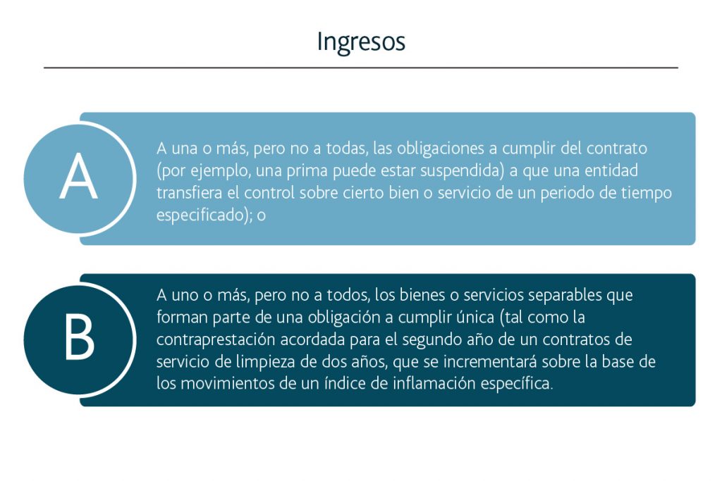 La contraprestación variable que se compromete en un contrato, puede atribuirse al contrato en su totalidad o a una parte específica del mismo de cualquiera de las formas siguientes: